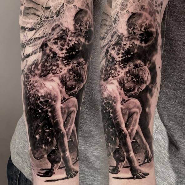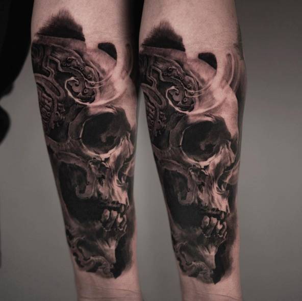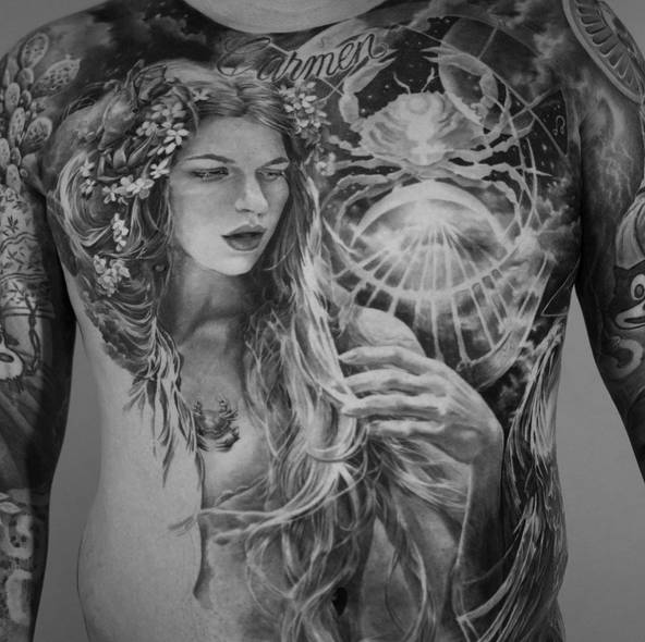 Tattoo Artist currently working out of his own shop, "The Raven & The Wolves" in Long Beach, Ca. Carlos is known for creating black and gray realism and surrealism work that you can recognize from across the room. His custom design process includes everything from hiring and photographing models to editing and eventually painting and/or tattooing each original art piece.