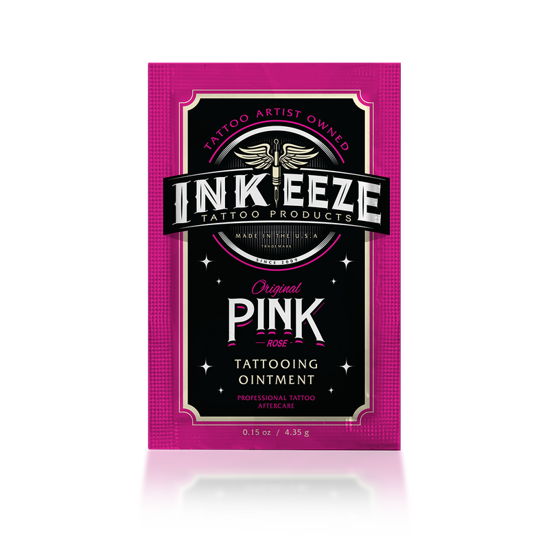 INKEEZE Pink Tattoo Ointment is a NON-Petroleum based ointment infused with essential oils. The formula was specifically developed by tattooers and skin care specialists for use as a lubricant during the tattoo process and collectors to use as an aftercare. A little goes a long way.